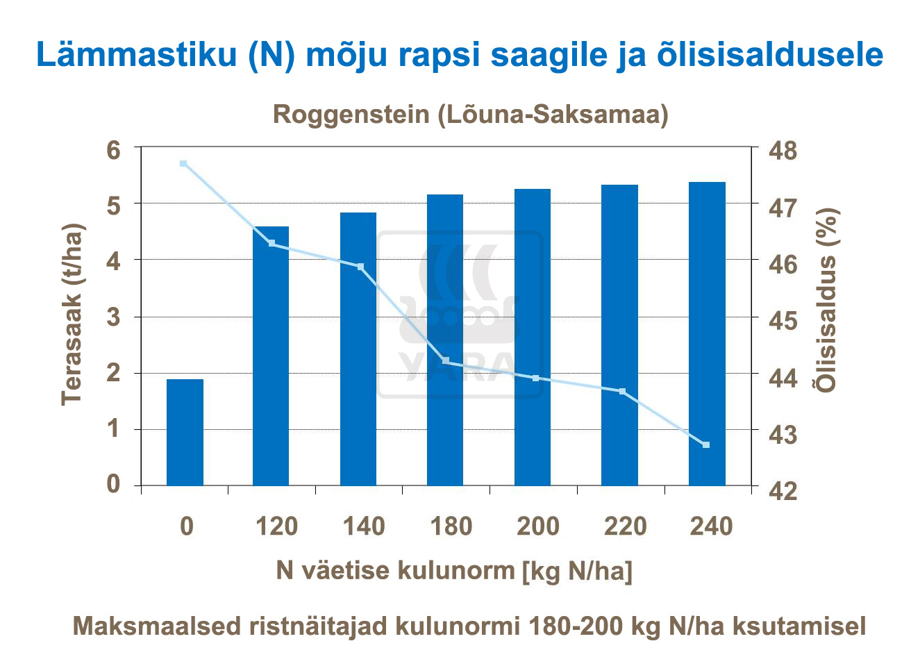 Lämmastikupuudus vähendab mitte ainult rapsi saaki, vaid ka seemnete valgusisadust. Samas viib lämmastikuga liigväetamine rapsisaagi kvaliteedi languseni – tulemuseks madal õlisisaldus ja suurenenud glükosinolaatide sisaldus, seda eriti siis, kui väävel pole olnud piiravaks teguriks.